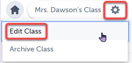 NOTE: You can also edit the class once you’re in the class by clicking on the “Settings Icon” on the top left of the window.